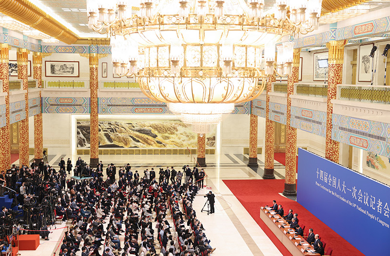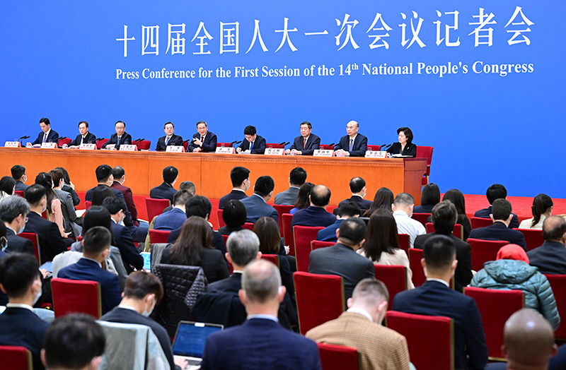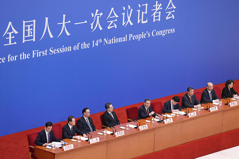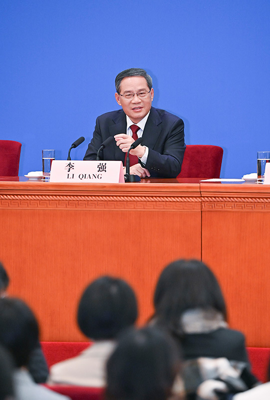 3月13日,十四届全国人大一次会议在北京人民大会堂举行记者会,国务院总理李强出席并回答中外记者提问。国务院副总理丁薛祥、何立峰、张国清、刘国中参加。