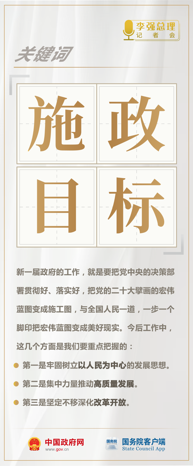 李强谈新一届政府施政目标和工作重点